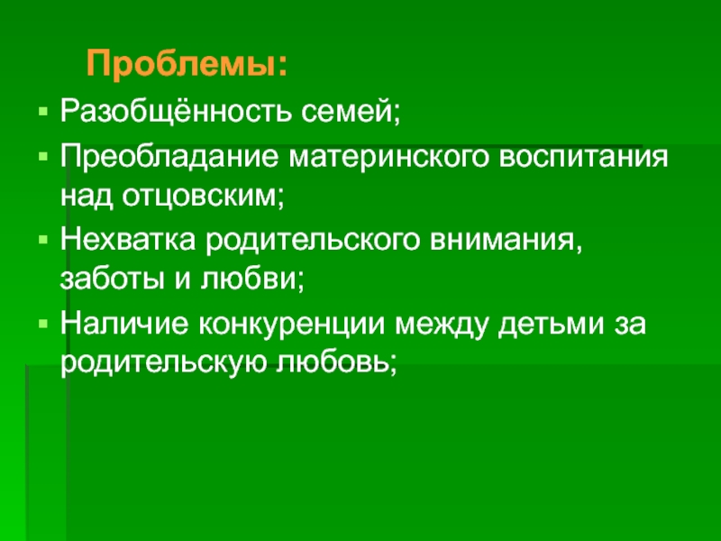 Преобладание материнского воспитания над отцовским;