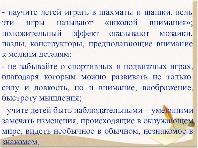 Слайд 38- научите детей играть в шахматы и шашки, ведь эти игры