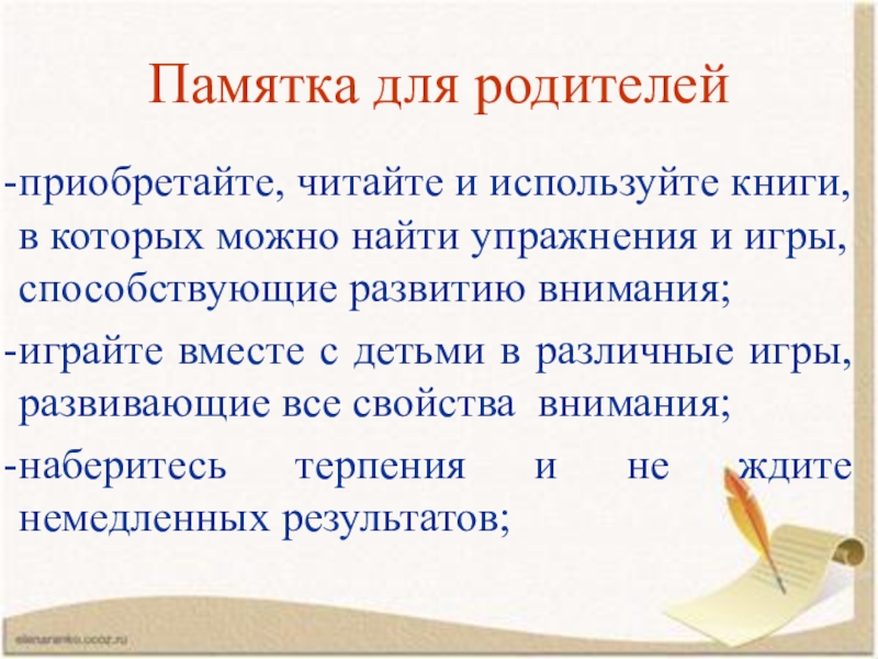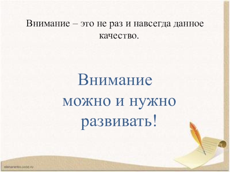 Слайд 16Внимание – это не раз и навсегда данное качество.