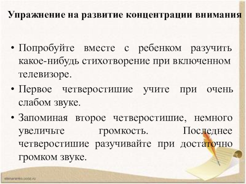 Попробуйте вместе с ребенком разучить какое-нибудь стихотворение при включенном телевизоре.