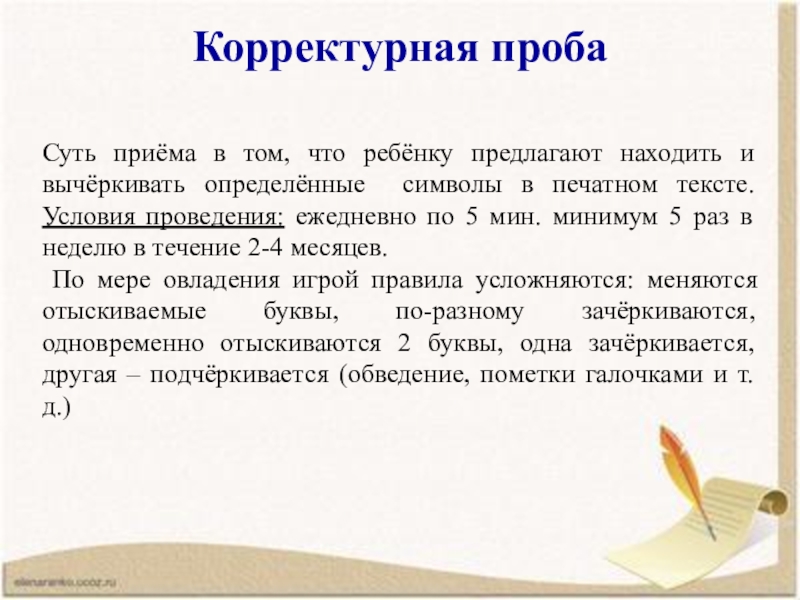 Слайд 29Суть приёма в том, что ребёнку предлагают находить и вычёркивать определённые