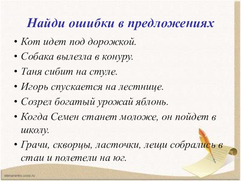 пустыня. В ответ я киваю ему рукой. Под Москвой не разводили, а теперь разводят. Грчи вют гнезда на деревьях. На повогодней елке висело много игрущек. Грачи для птенцов червей на пашне. Охотник вечером сохоты. В тетрати Раи хорошие отлетки. Нашкольной площадке играли дети. Мальчик мчался на лошади. В траве стречет кузнечик. Зимой в саду расцвели яблони».