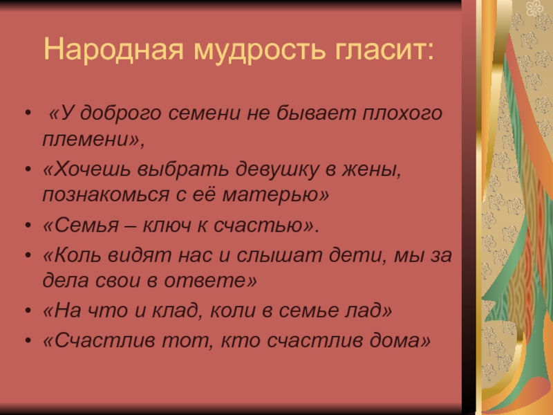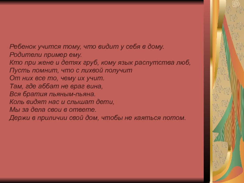 Слайд 1«Ребенок учится тому, что видит у себя в дому»