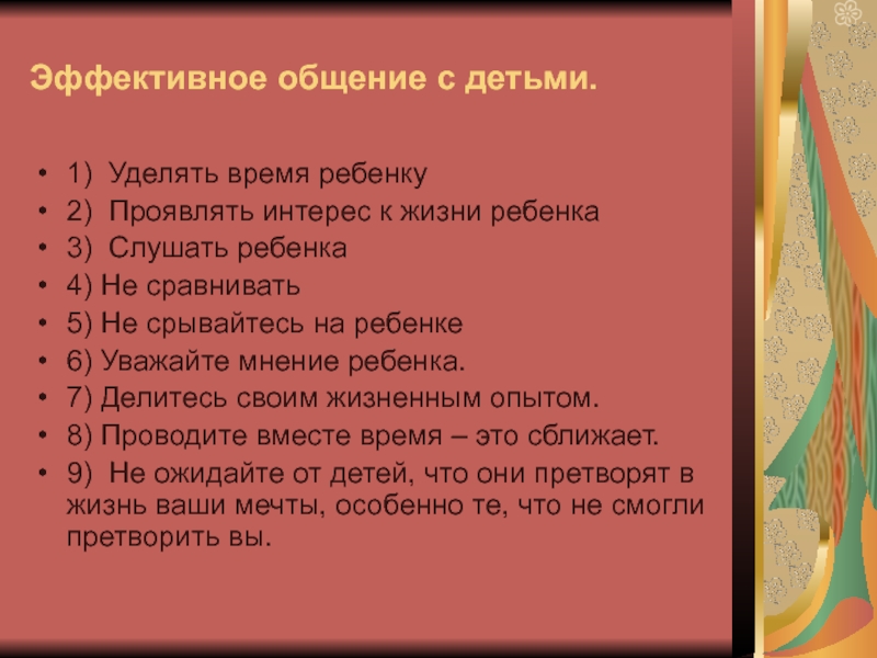 9) Не ожидайте от детей, что они претворят в жизнь ваши мечты, особенно те, что не смогли претворить вы.