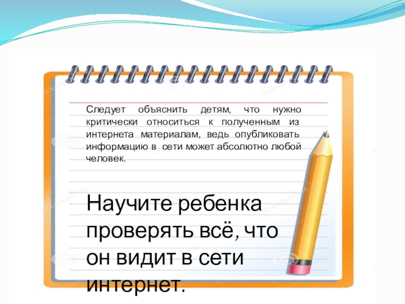 Слайд 11Следует объяснить детям, что нужно критически относиться к полученным из интернета