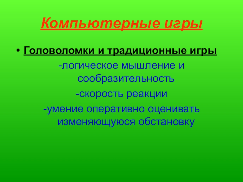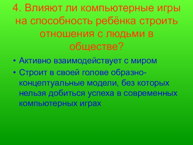 Строит в своей голове образно-концептуальные модели, без которых нельзя добиться успеха в современных компьютерных играх
