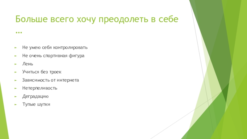 Слайд 23Больше всего хочу преодолеть в себе …