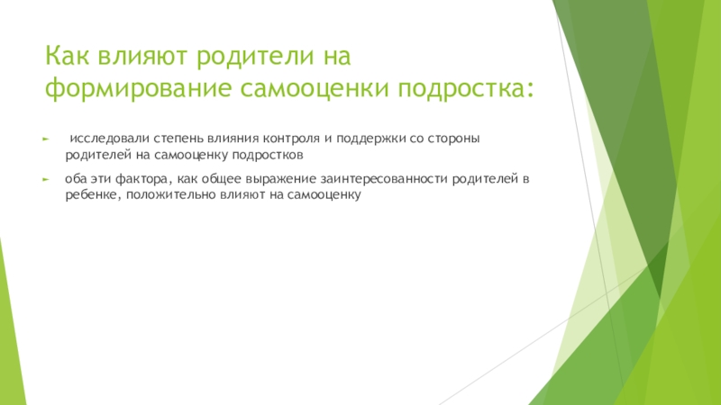 Слайд 11Как влияют родители на формирование самооценки подростка: