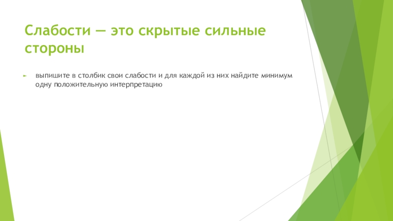 Слайд 17Слабости — это скрытые сильные стороны