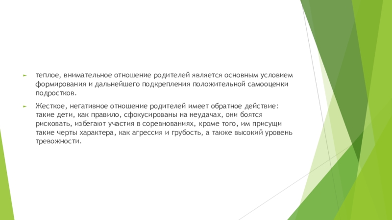 Слайд 12теплое, внимательное отношение родителей является основным условием формирования и дальнейшего подкрепления