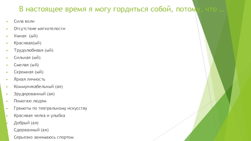 Слайд 22В настоящее время я могу гордиться собой, потому, что …