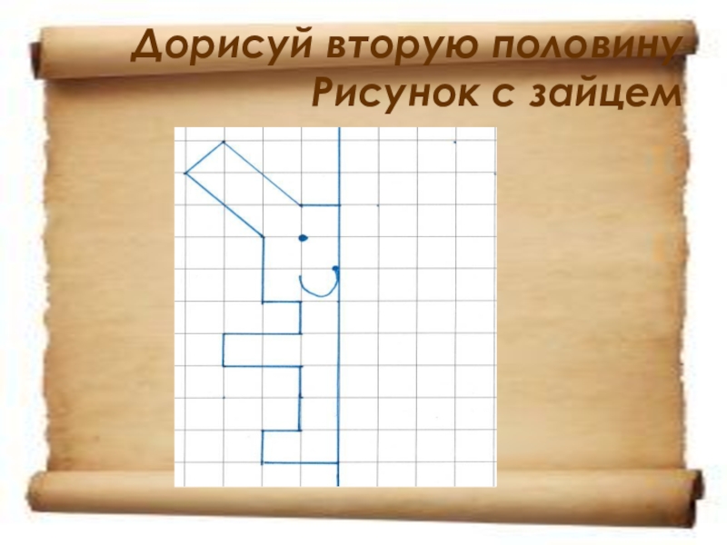 Слайд 29Дорисуй вторую половину Рисунок с зайцем