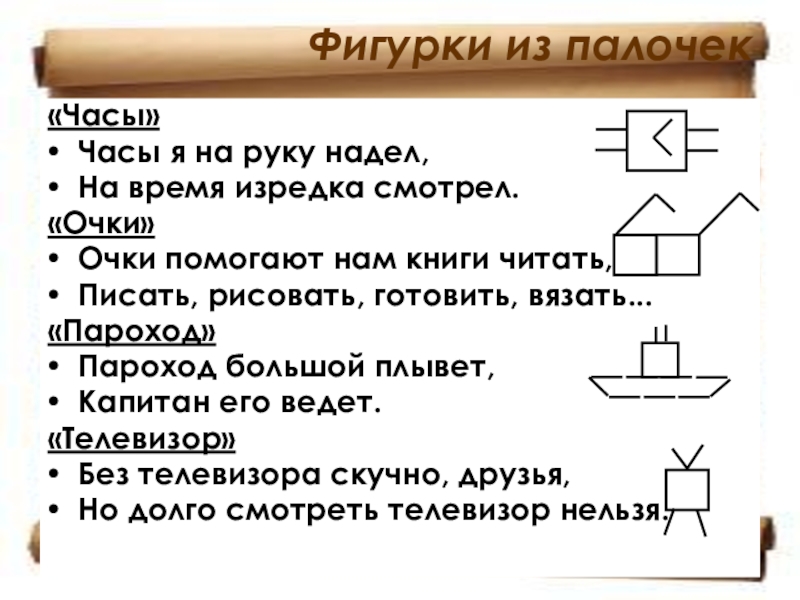 составлять из нескольких треугольников, четырехугольников фигуры большего размера,