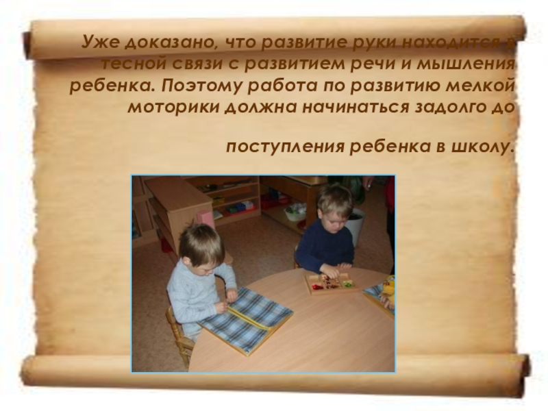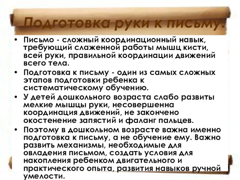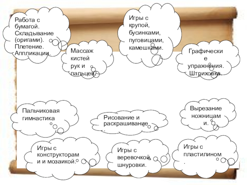 Кисти рук приобретают хорошую подвижность, гибкость, исчезает скованность движений, что в дальнейшем облегчит приобретение навыков письма.