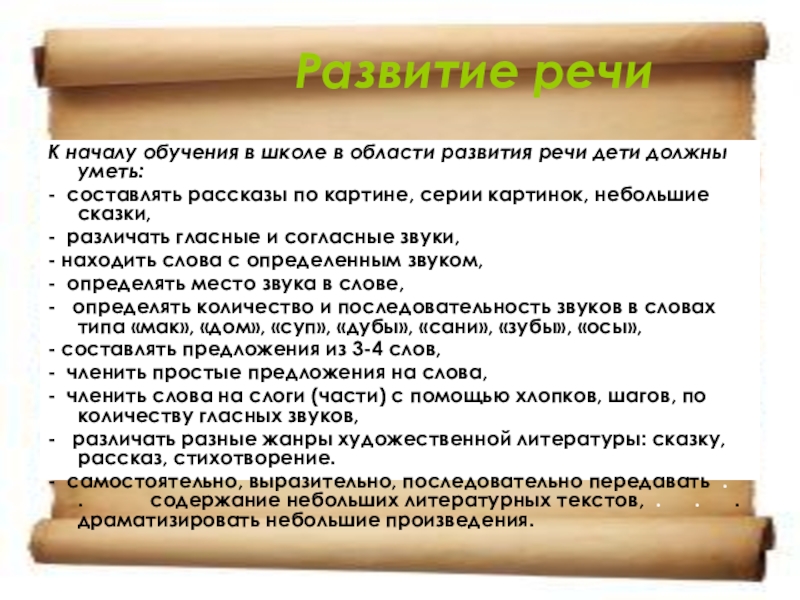 - самостоятельно, выразительно, последовательно передавать . . содержание небольших литературных текстов, . . . драматизировать небольшие произведения.
