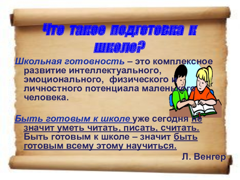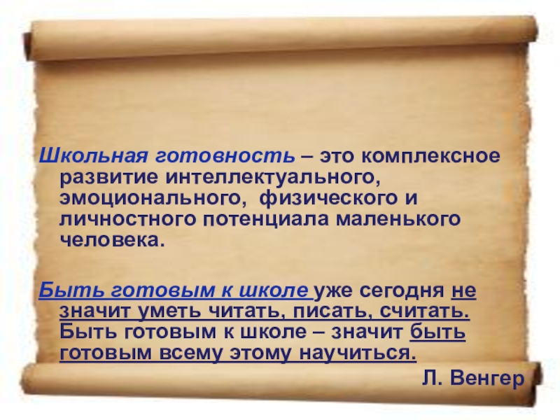 Быть готовым к школе уже сегодня не значит уметь читать, писать, считать. Быть готовым к школе – значит быть готовым всему этому научиться.