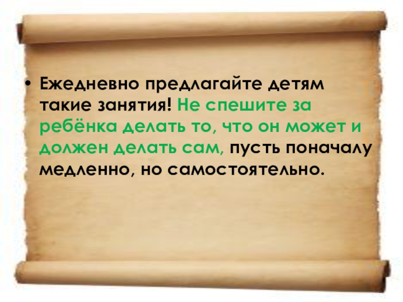 Слайд 36Ежедневно предлагайте детям такие занятия! Не спешите за ребёнка делать то,