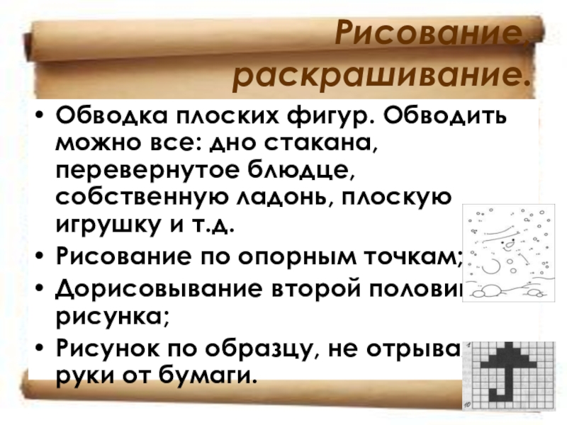 Обводка плоских фигур. Обводить можно все: дно стакана, перевернутое блюдце,