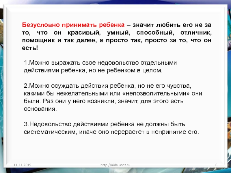 3.Недовольство действиями ребенка не должны быть систематическим, иначе оно перерастет в непринятие его.