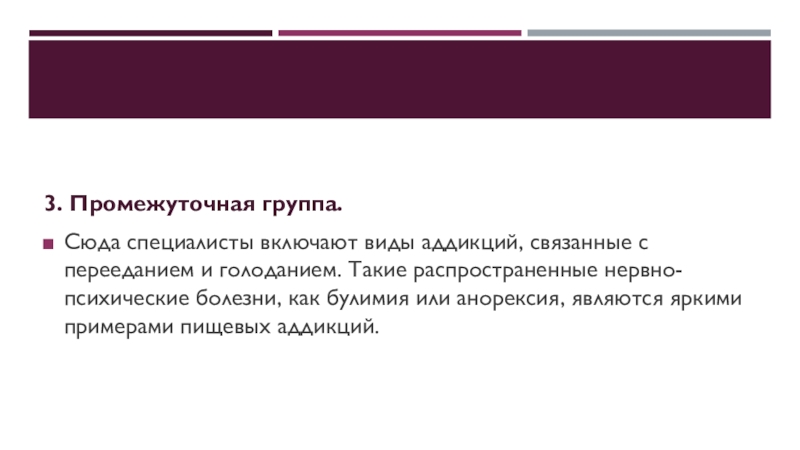 и голоданием. Такие распространенные нервно-психические болезни, как булимия или анорексия, являются яркими примерами пищевых аддикций.