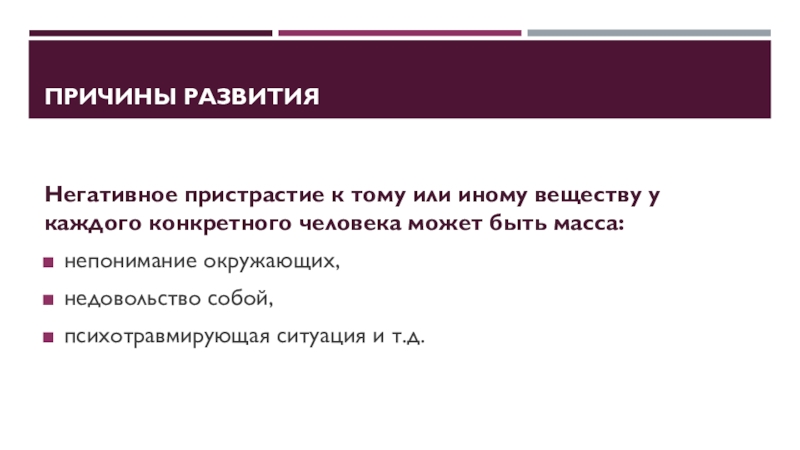 Негативное пристрастие к тому или иному веществу у каждого конкретного
