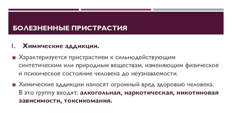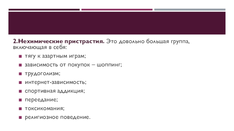 Слайд 122.Нехимические пристрастия. Это довольно большая группа, включающая в себя:
