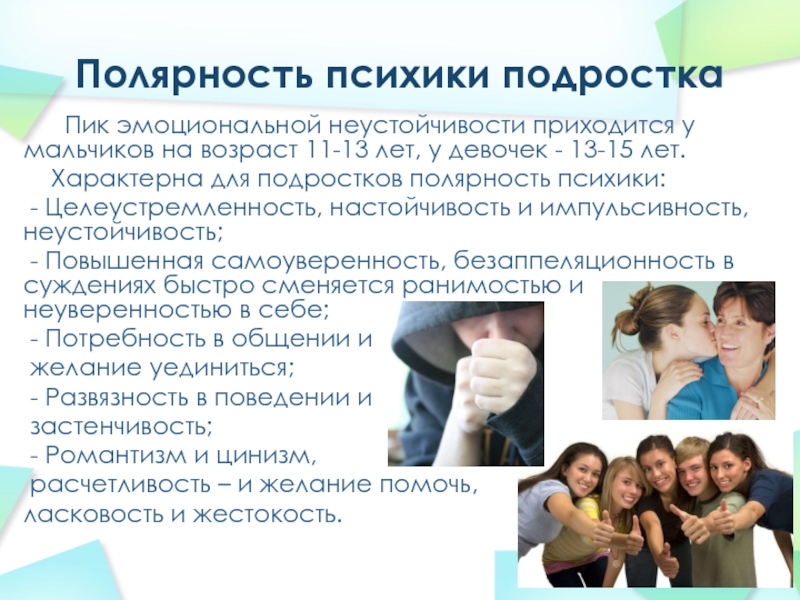 Слайд 5Полярность психики подростка