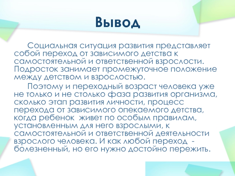 детства к самостоятельной и ответственной взрослости. Подросток занимает промежуточное положение между детством и взрослостью.