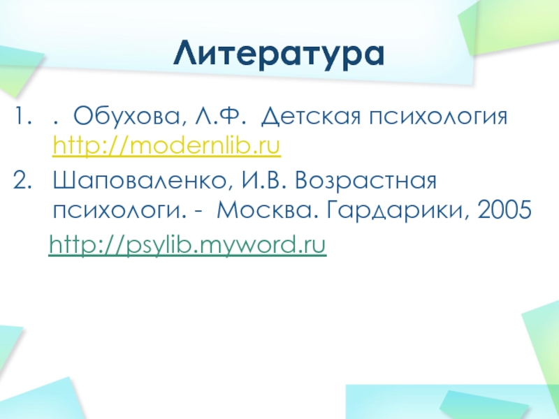 . Обухова, Л.Ф. Детская психология http://modernlib.ru