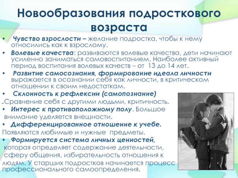 Слайд 11Новообразования подросткового возраста