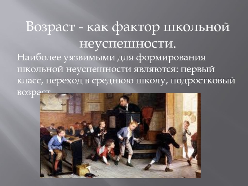 Слайд 8Возраст - как фактор школьной неуспешности.