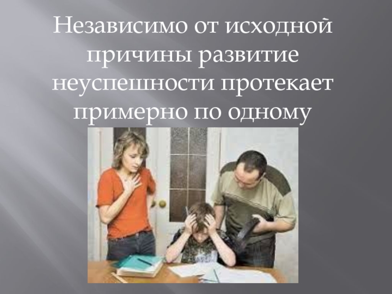 Слайд 17Независимо от исходной причины развитие неуспешности протекает примерно по одному сценарию!