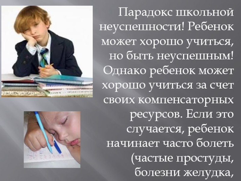 Слайд 19Парадокс школьной неуспешности! Ребенок может хорошо учиться, но быть неуспешным! Однако