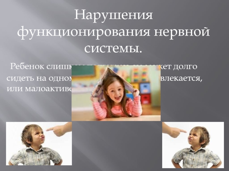 на одном месте, постоянно отвлекается, или малоактивен, вял