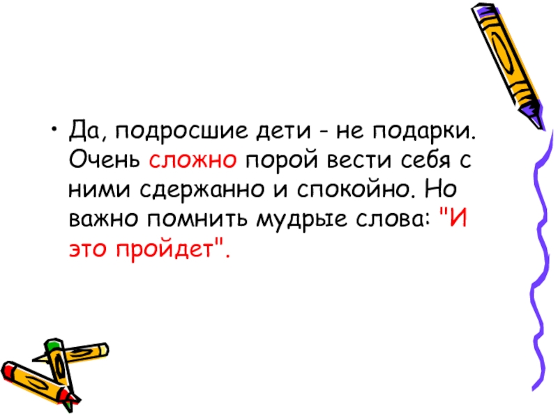 с ними сдержанно и спокойно. Но важно помнить мудрые слова: "И это пройдет".