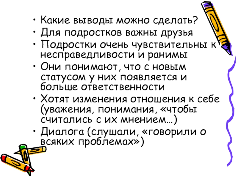 Хотят изменения отношения к себе (уважения, понимания, «чтобы считались с их мнением…)