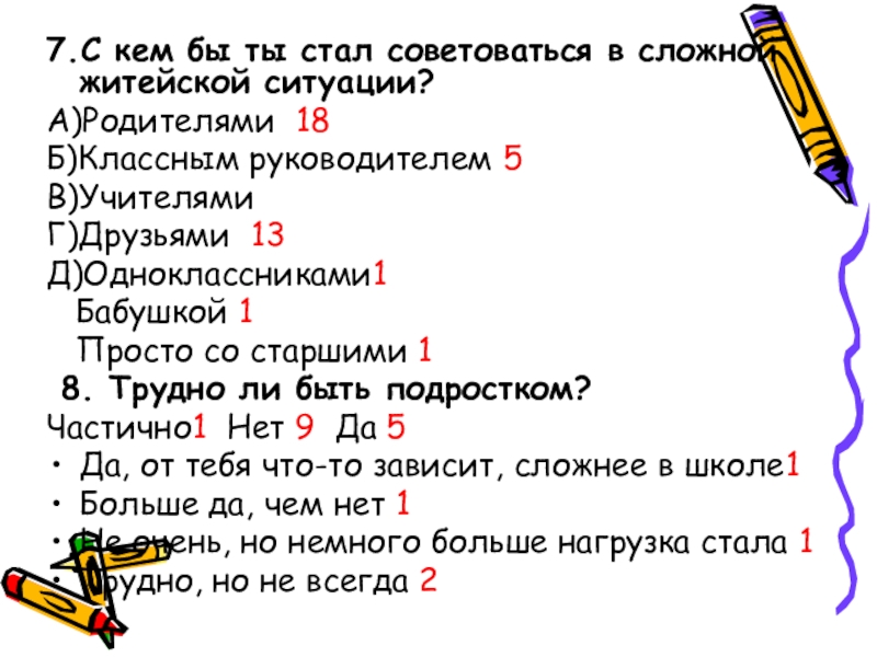 Слайд 147.С кем бы ты стал советоваться в сложной житейской ситуации?