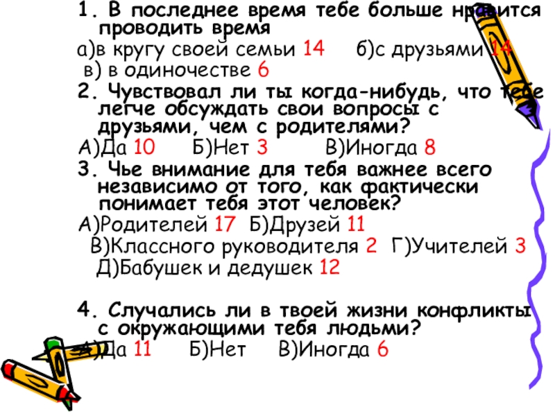 Слайд 121. В последнее время тебе больше нравится проводить время