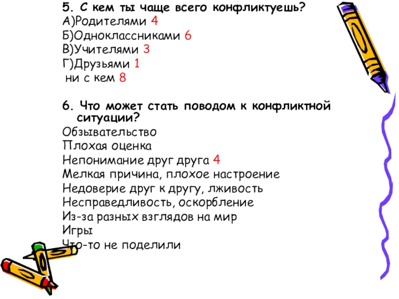 4. Случались ли в твоей жизни конфликты с окружающими тебя людьми?