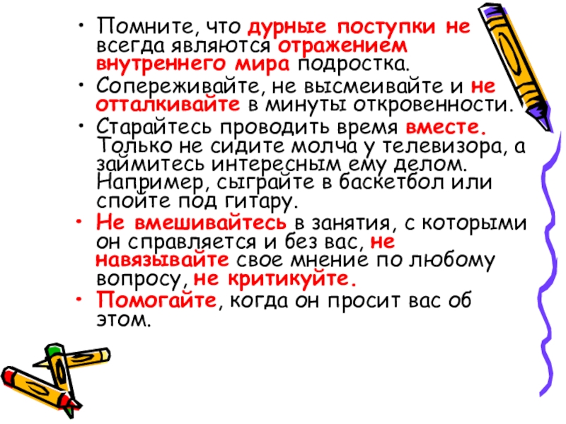Слайд 18Помните, что дурные поступки не всегда являются отражением внутреннего мира подростка.