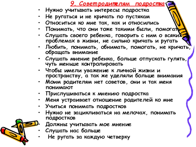 Слушать мнение ребенка, больше отпускать гулять, чуть меньше контролировать