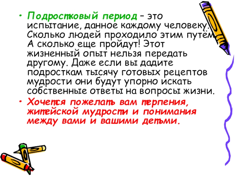 Слайд 21Подростковый период – это испытание, данное каждому человеку. Сколько людей проходило