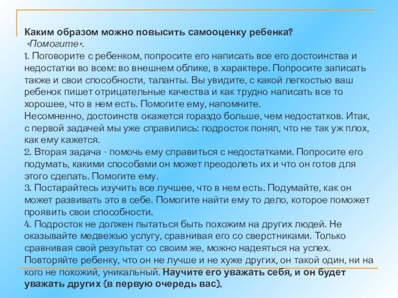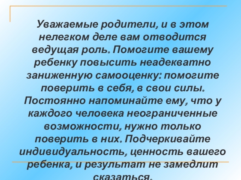 очень важен уровень достижений, осуществленным каждым ребенком;