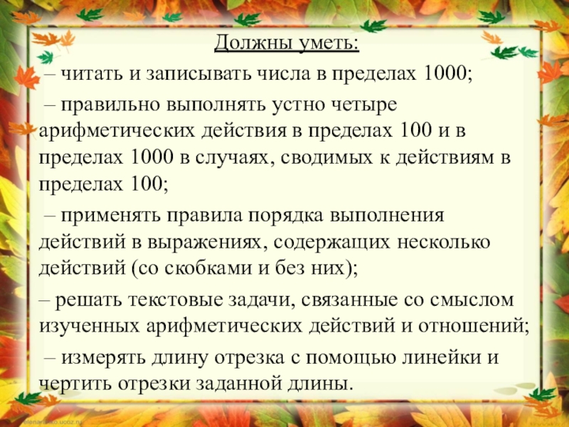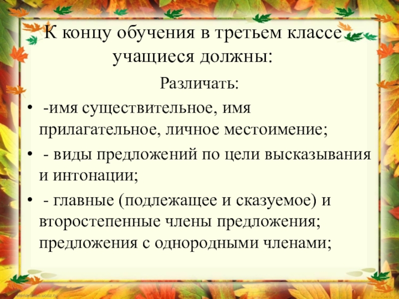Слайд 5К концу обучения в третьем классе учащиеся должны: