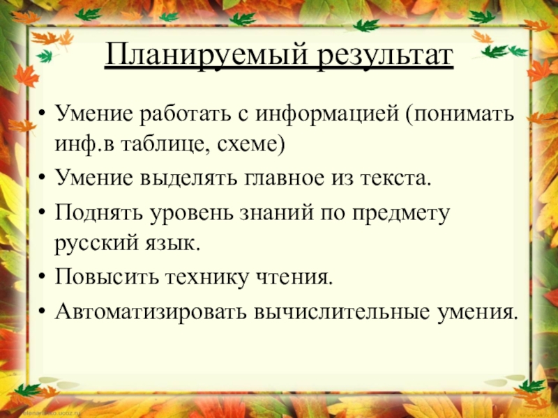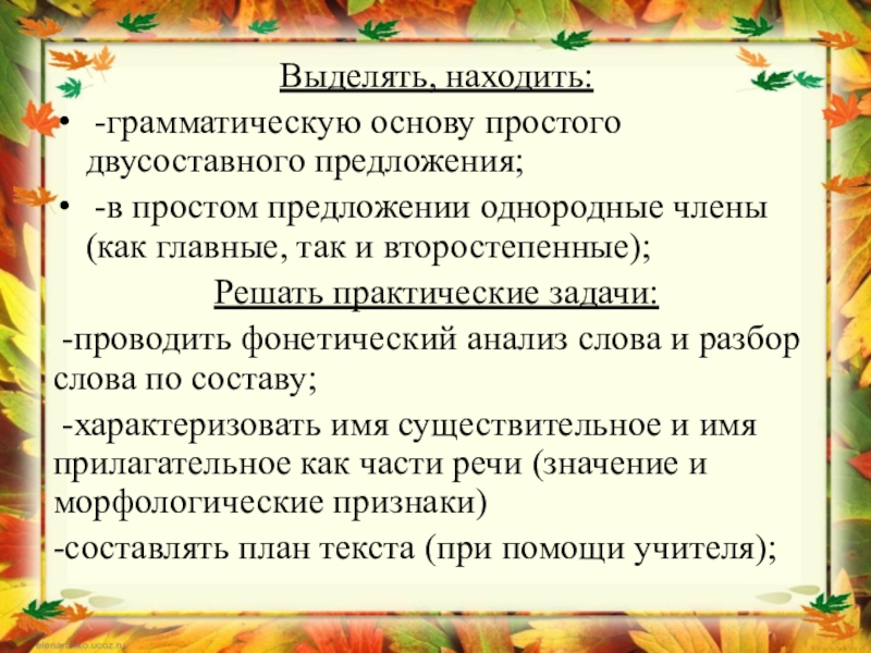 -составлять план текста (при помощи учителя);