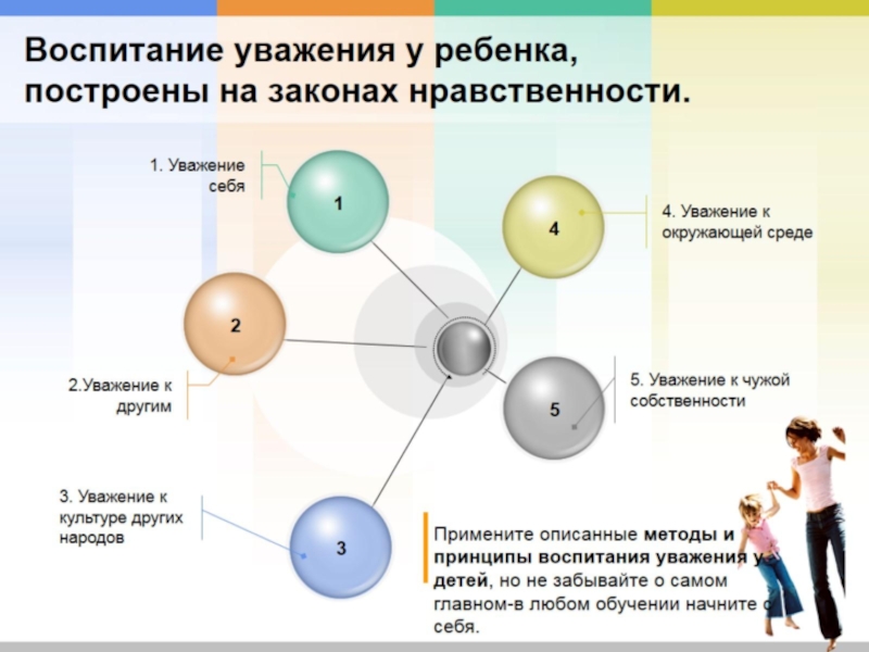 Слайд 10Воспитание уважения у ребенка, построены на законах нравственности.