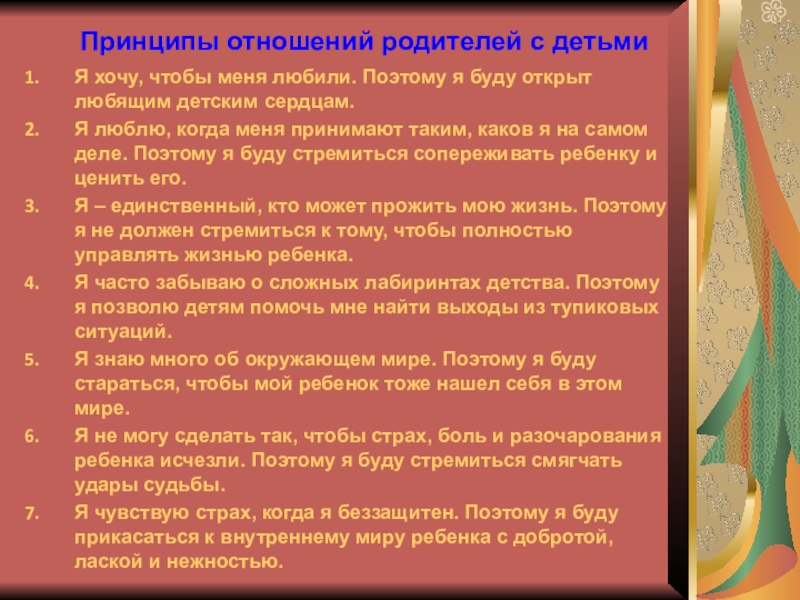 Я люблю, когда меня принимают таким, каков я на самом деле. Поэтому я буду стремиться сопереживать ребенку и ценить его.