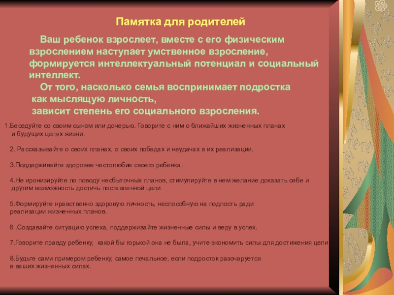 Беседуйте со своим сыном или дочерью. Говорите с ним о ближайших жизненных планах