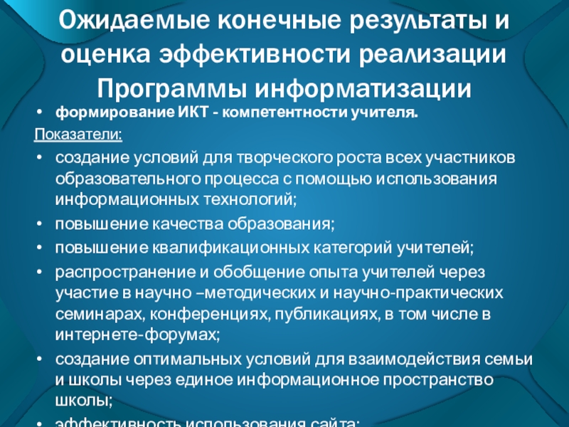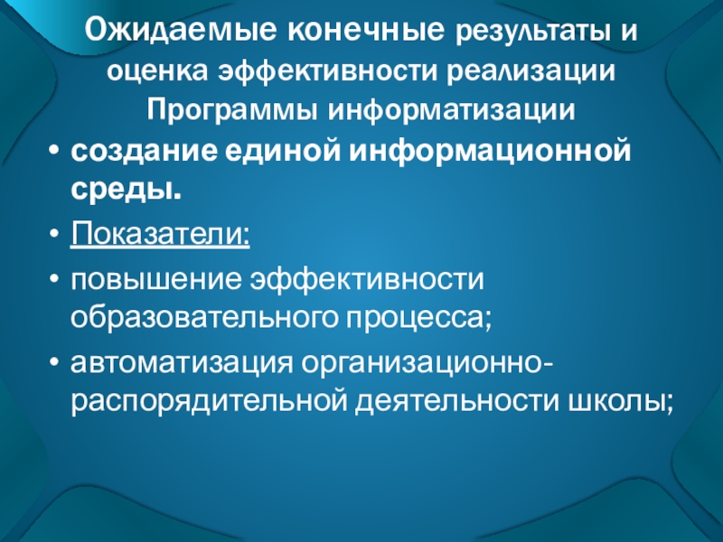 Слайд 28Ожидаемые конечные результаты и оценка эффективности реализации Программы информатизации
