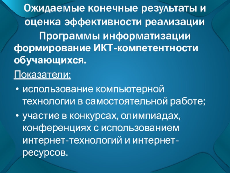 Слайд 30Ожидаемые конечные результаты и оценка эффективности реализации Программы информатизации